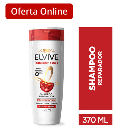 Ahorra 15%Precio anterior Antes Bs61,40Precio actual Ahora Bs52,20Descripción: Shampoo Elvive Reparación Total 5 con 2% de concentrado reparador con Keratina XS y efecto anti-sal para cabello dañado. Repara los 5 ...