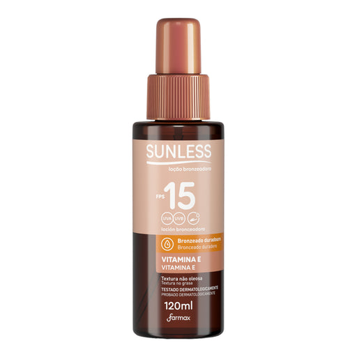 Ahorra 25%Precio anterior Antes Bs102,00Precio actual Ahora Bs76,50Locion Bronceadora Sunless Farmax Fps15 X 120Ml