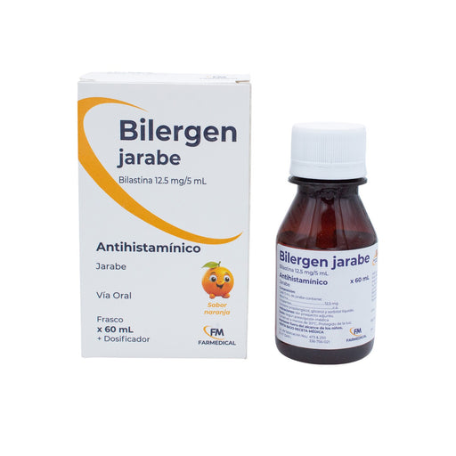 Bilergen jarabe. Bilastina 125 mg/5 ml. Acción terapéutica: Antihistamínico. Vía de administraicón oral. Contiene frasco de 60 ml + dosificador.